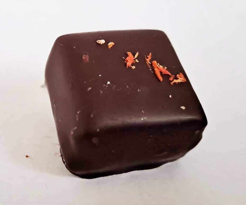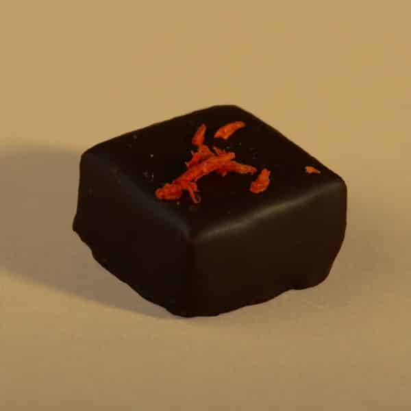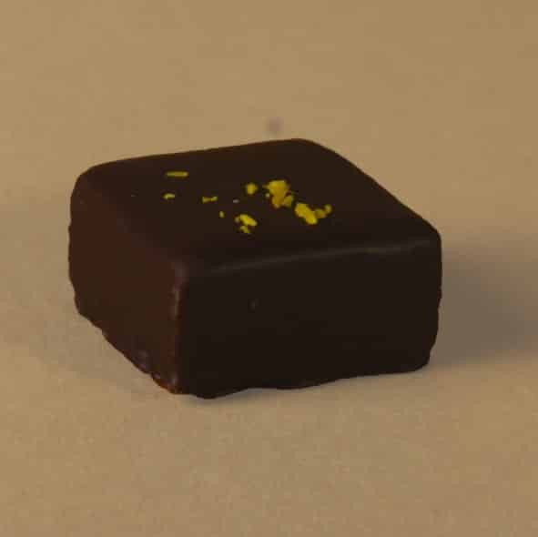 Ganache chocolat fondant au thé noir parfumé (agrumes et épices) avec note de pain d’épices